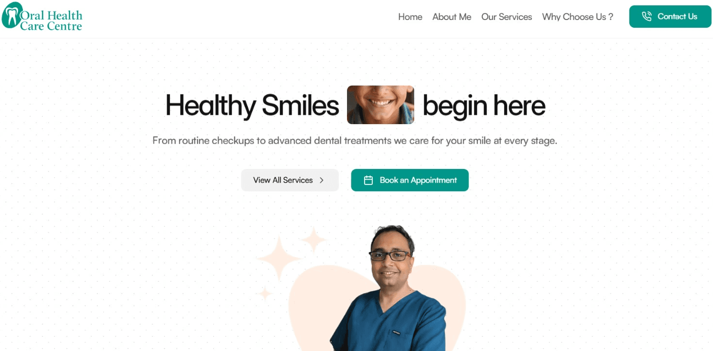 A clean and responsive dental clinic website built to strengthen online presence, improve user experience, and convert visitors into scheduled appointments.